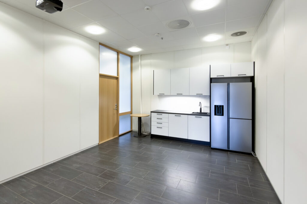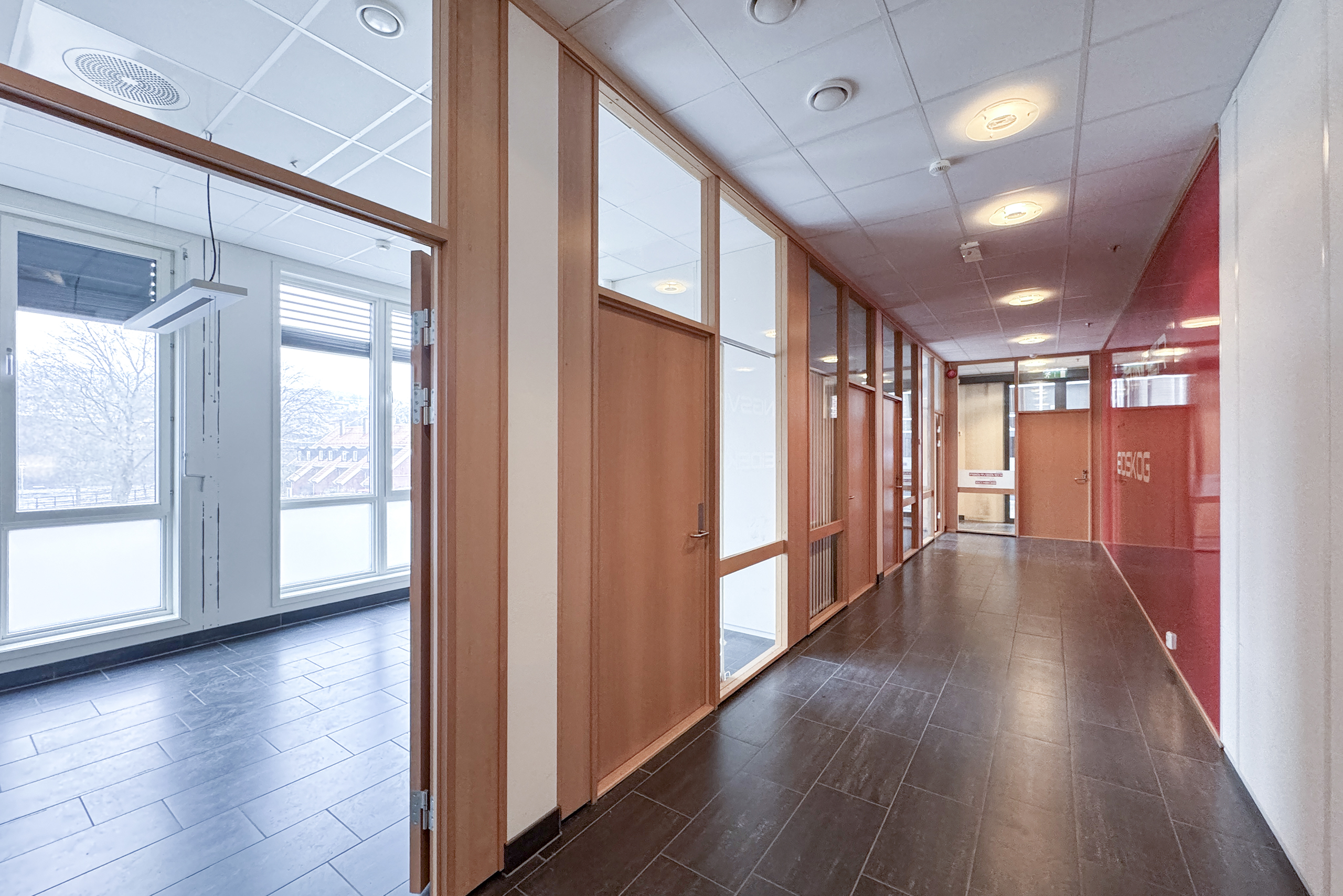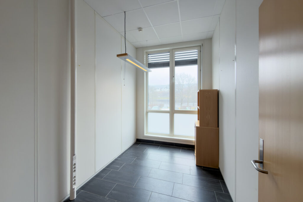 Kontorlokalet består av 1 stort kontorrom, med god plass til 3–4 arbeidplasser og 5 kontorrom med 1–2 arbeidsplasser, i tillegg er det et stort møterom med kjøkken.